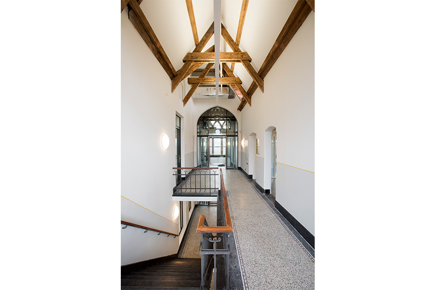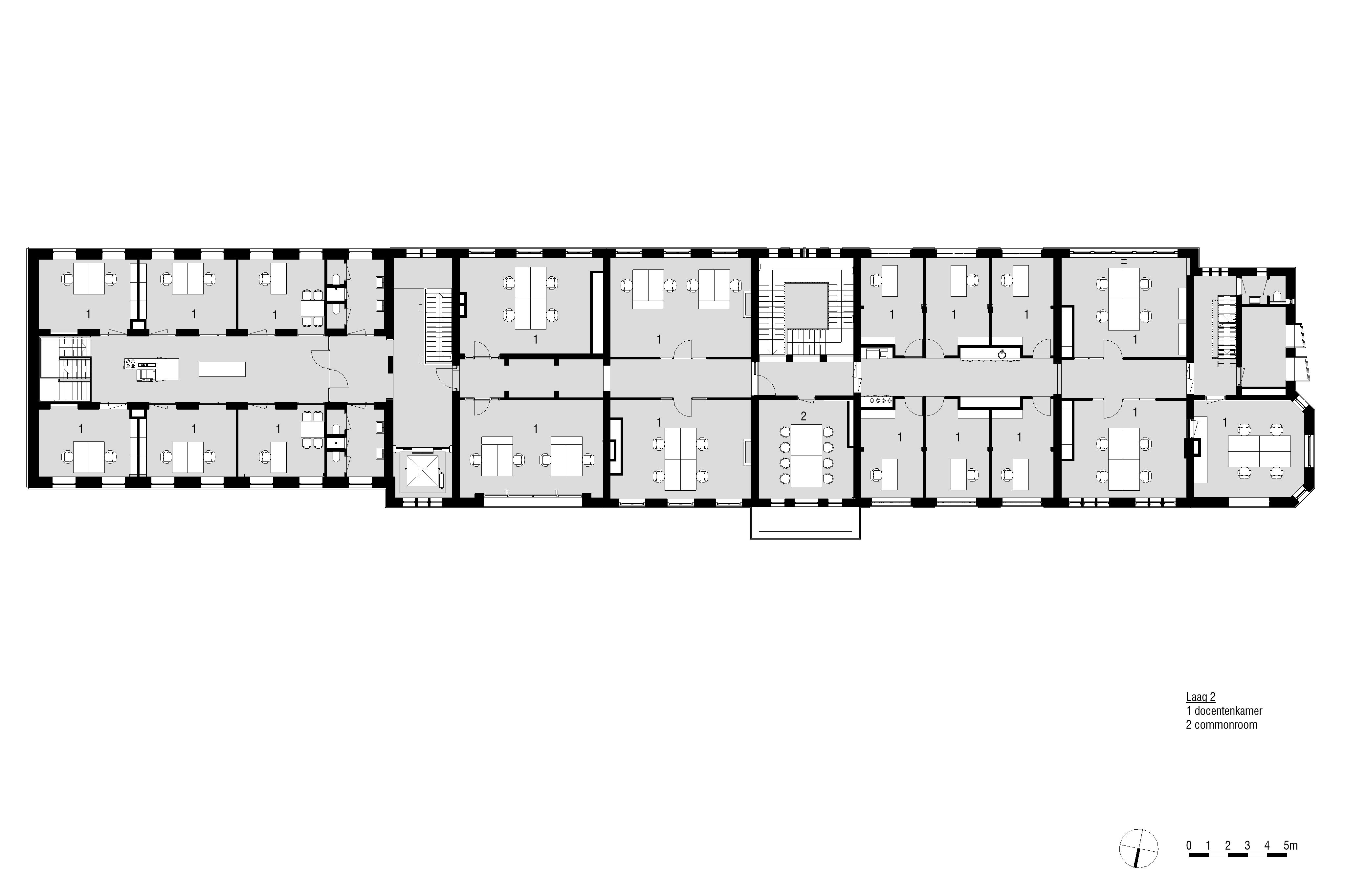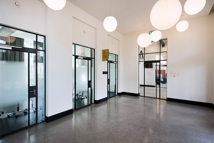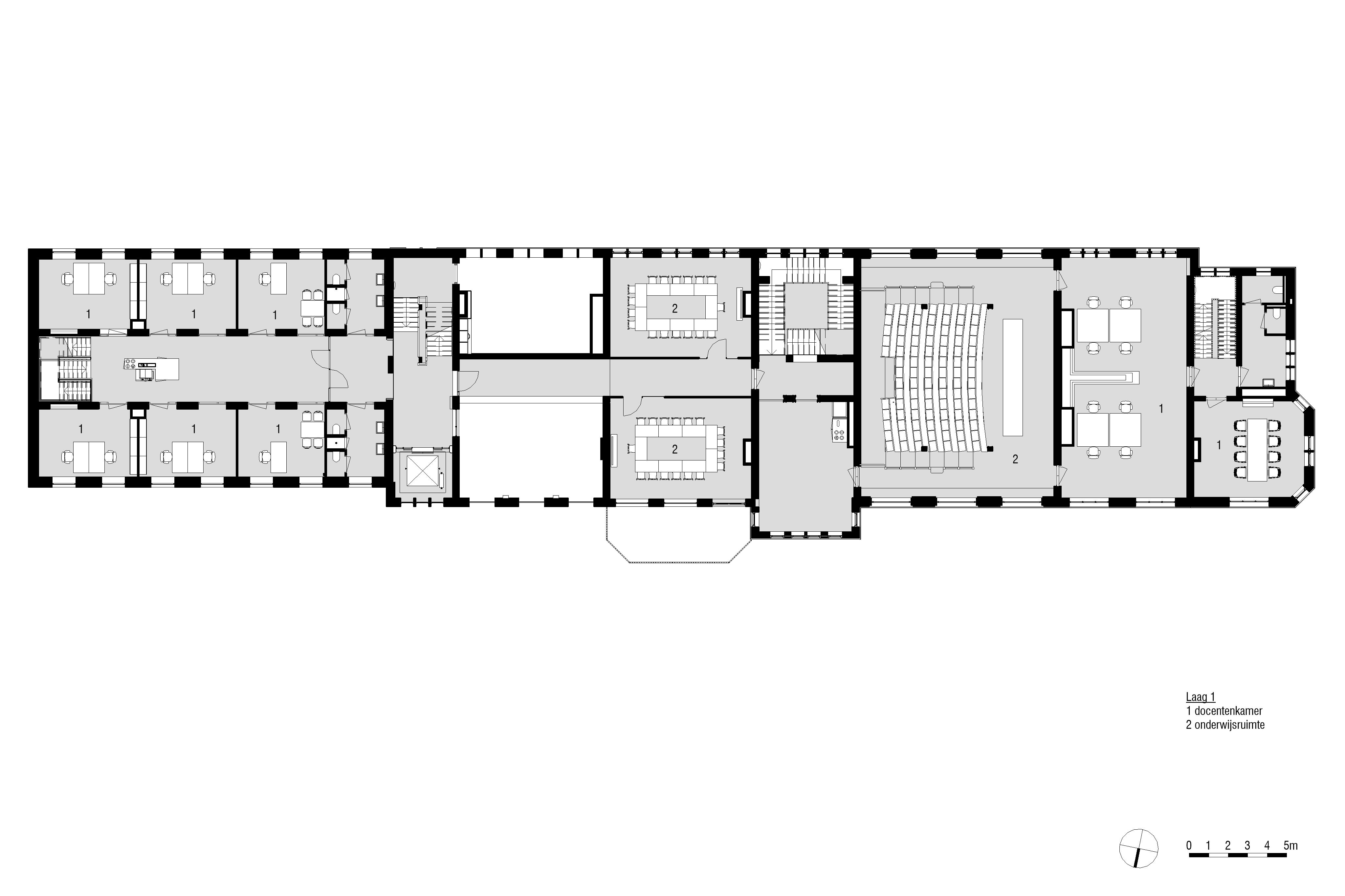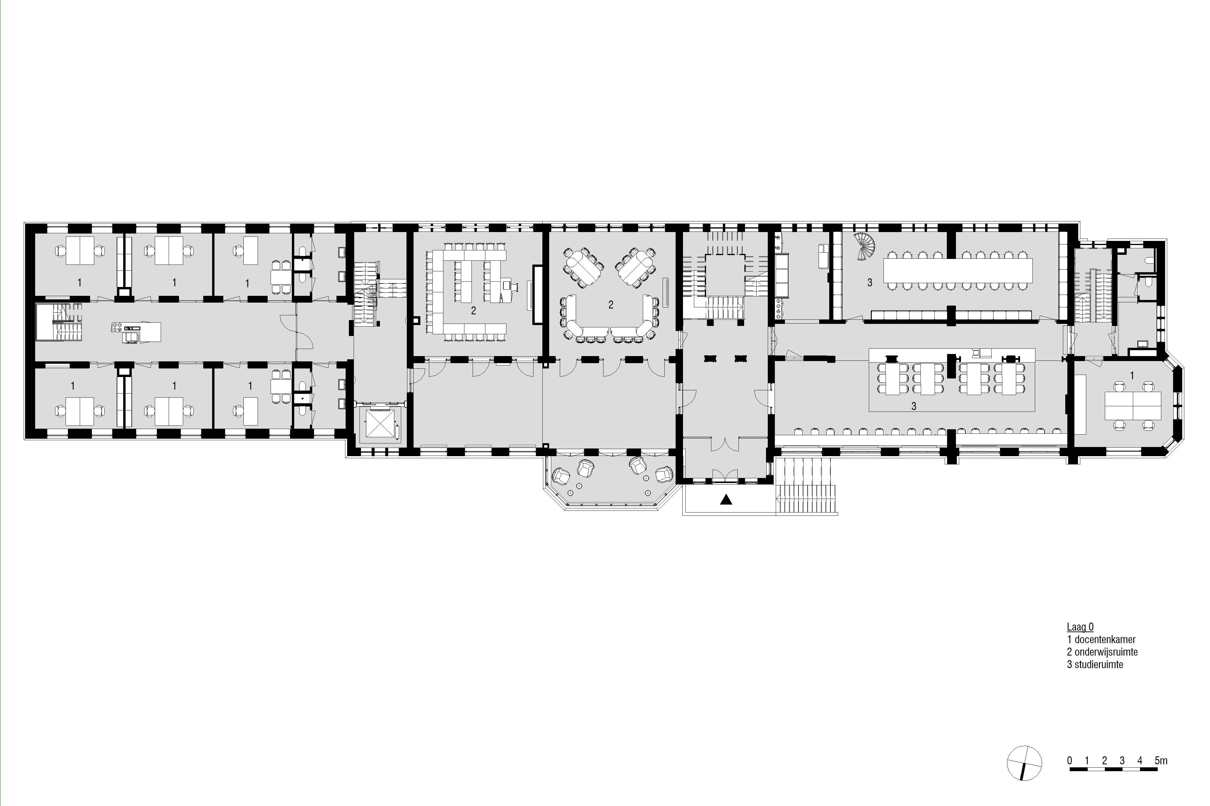 Het PJ Veth gebouw grenst aan de Leidse Hortus Botanicus.  De monumentale status van het gebouw heeft tijdens de verbouwing en renovatie een belangrijke rol gespeeld. Door middel van innovatieve oplossingen is het gebouw in ere hersteld. Zo is het bovenste deel van het centrale trappenhuis, het visitekaartje van het gebouw, 180º gedraaid. Daarnaast is ook een onderdoorgang gerealiseerd, om de bereikbaarheid van het gebouw te vergroten. Maar de meest ingrijpende verandering in het nieuwe ontwerp is de verplaatsing van de entree die de voor- en achtergevel als het ware heeft omgedraaid. Behalve de bouwkundige elementen, speelt het kleurgebruik  in dit ontwerp een belangrijke rol. De oorspronkelijke kleuren zijn door het verwijderen van lagen verf en bestuderen van historische foto’s teruggehaald en vormen de basis voor het huidige kleurenpalet.