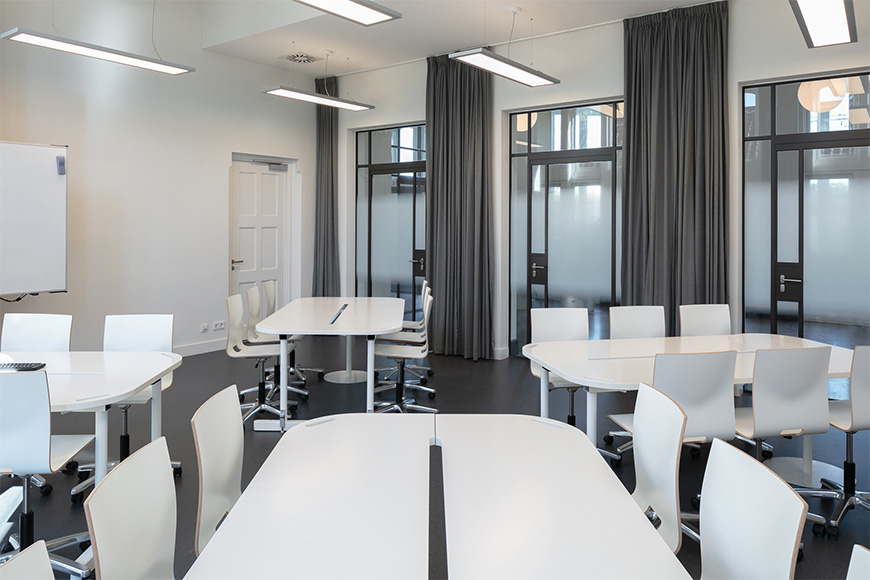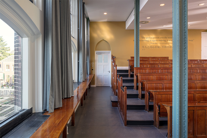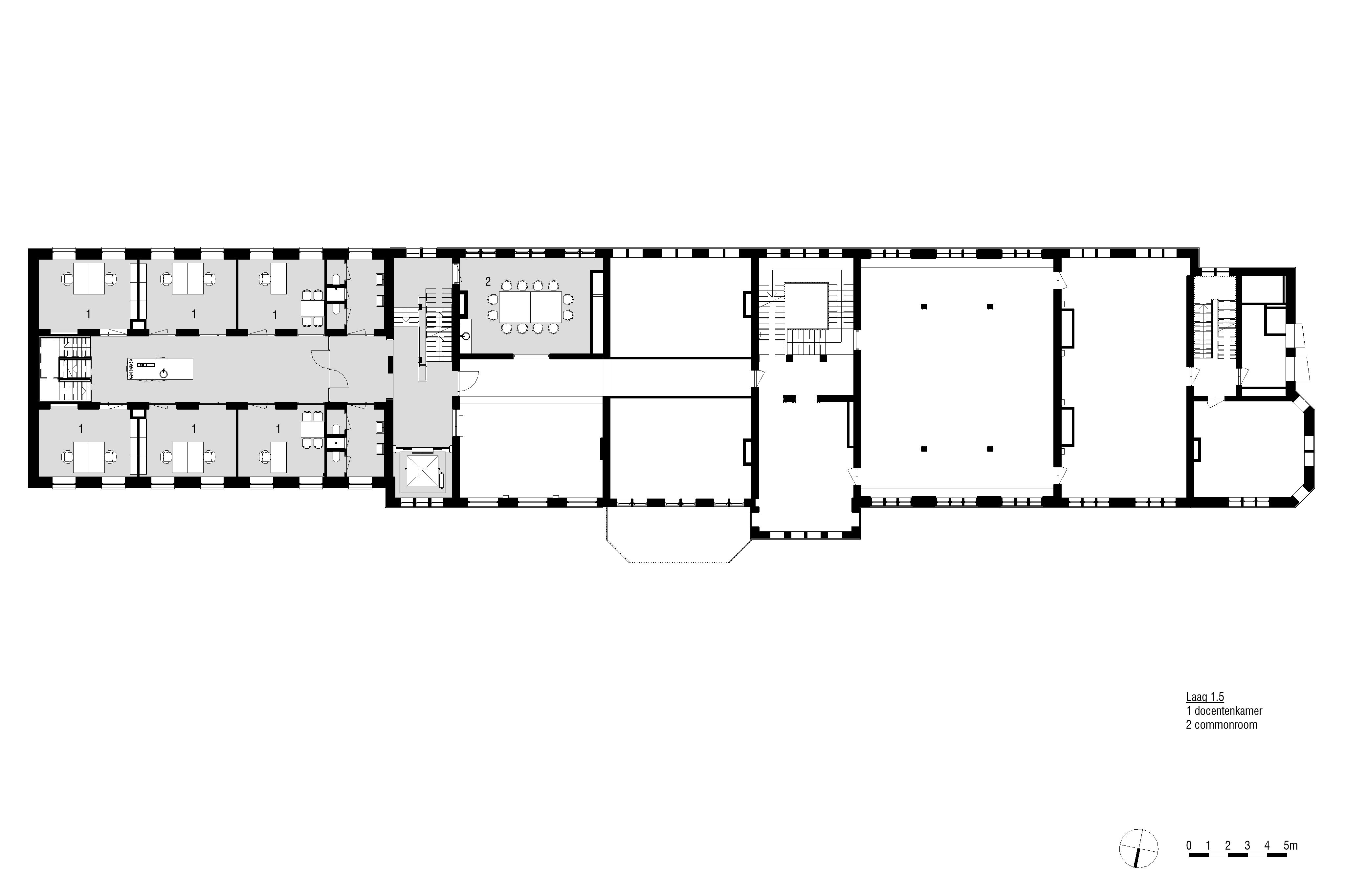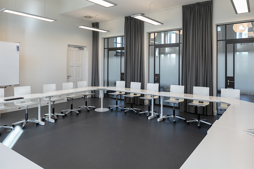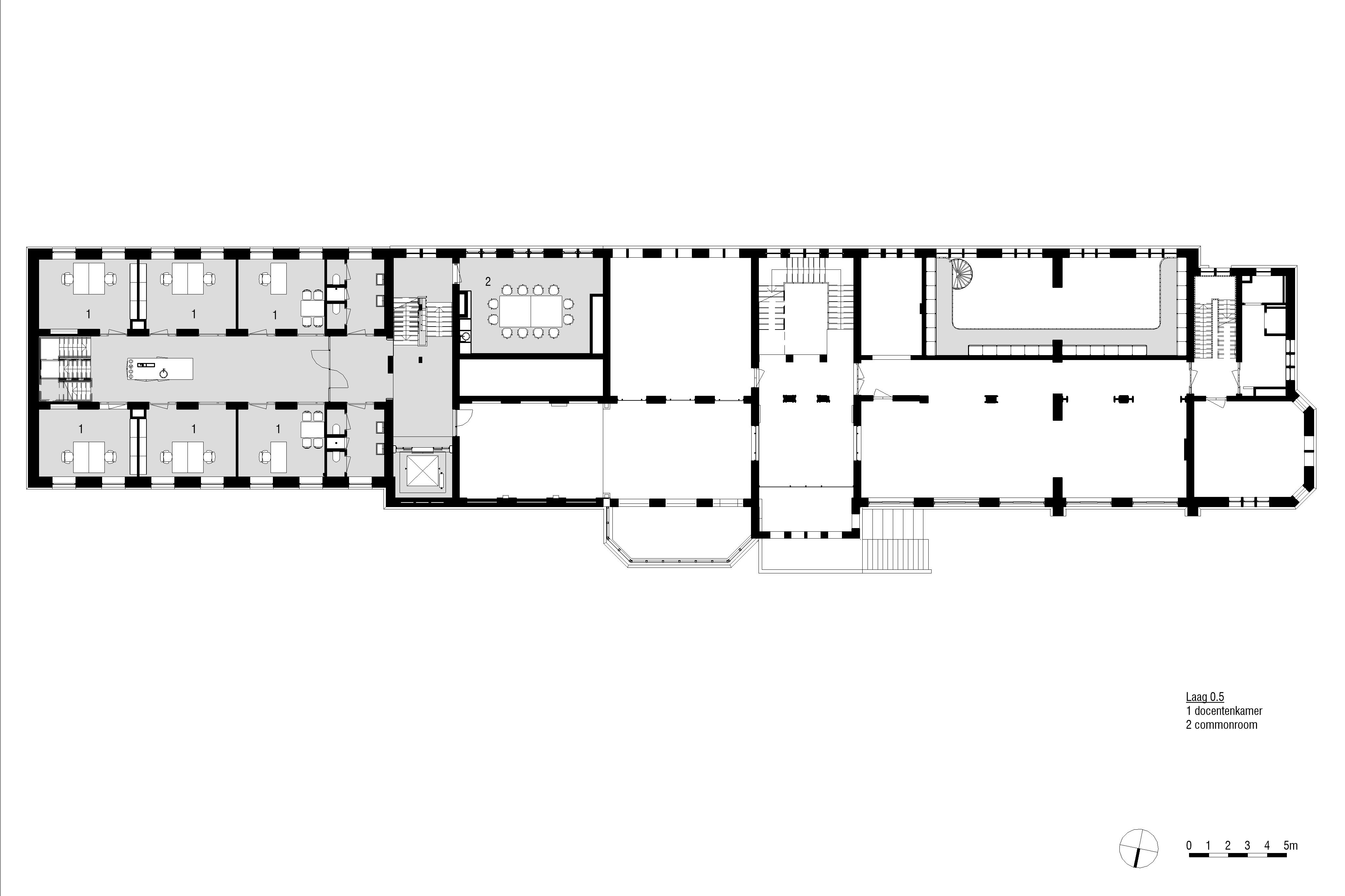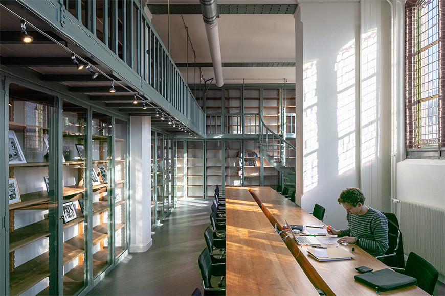 Het PJ Veth gebouw grenst aan de Leidse Hortus Botanicus.  De monumentale status van het gebouw heeft tijdens de verbouwing en renovatie een belangrijke rol gespeeld. Door middel van innovatieve oplossingen is het gebouw in ere hersteld. Zo is het bovenste deel van het centrale trappenhuis, het visitekaartje van het gebouw, 180º gedraaid. Daarnaast is ook een onderdoorgang gerealiseerd, om de bereikbaarheid van het gebouw te vergroten. Maar de meest ingrijpende verandering in het nieuwe ontwerp is de verplaatsing van de entree die de voor- en achtergevel als het ware heeft omgedraaid. Behalve de bouwkundige elementen, speelt het kleurgebruik  in dit ontwerp een belangrijke rol. De oorspronkelijke kleuren zijn door het verwijderen van lagen verf en bestuderen van historische foto’s teruggehaald en vormen de basis voor het huidige kleurenpalet.